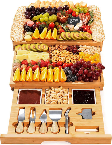 Juego de regalo de tablero de charcutería de bambú 100% Extra grande, bandeja de corte elegante de 33,7x15,7 pulgadas para queso, carne, cuchillo de cocina para el hogar